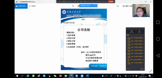王海军结合往届赛事展板、本届赛事模板,根据自身丰富的参加赛事、指导赛事经验,详细指导学生作品展板、项目PPT、项目计划书、项目陈述视频的制作,并现场回答了同学们关于复赛准备过程中遇到的难题。