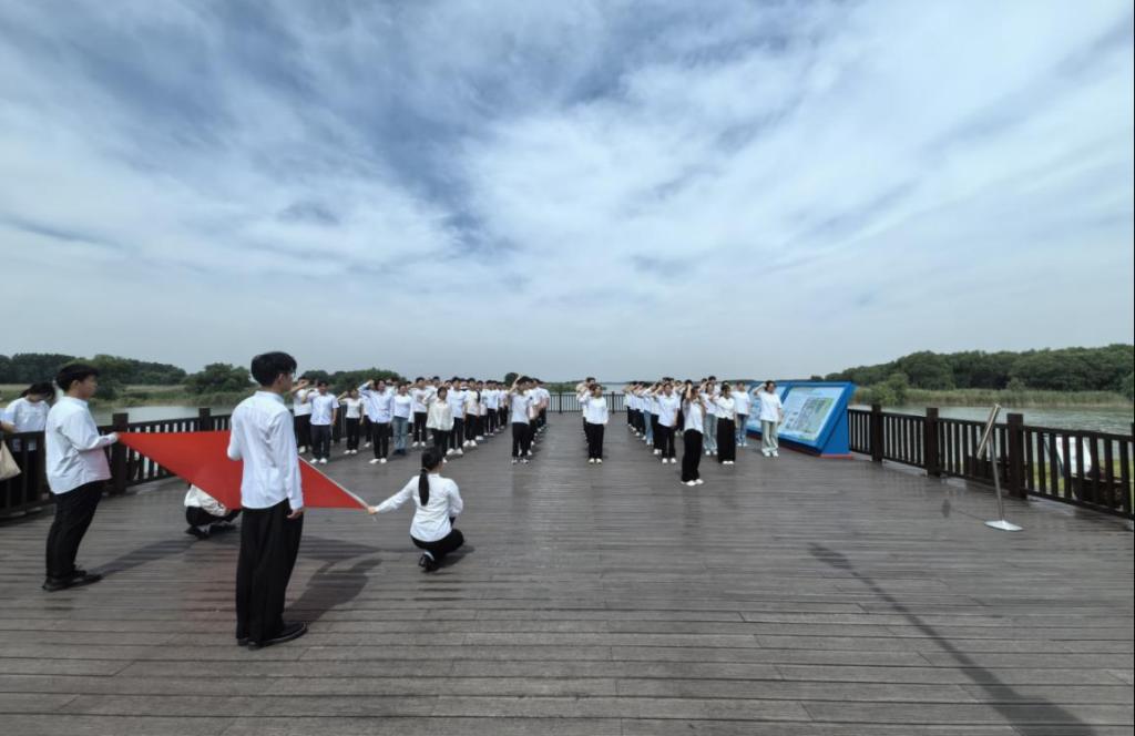 于马鞍山薛家洼生态园联合举行新团员入团仪式。3名院团委书记、2024年新发展团员及优秀团员代表参加本次入团仪式。