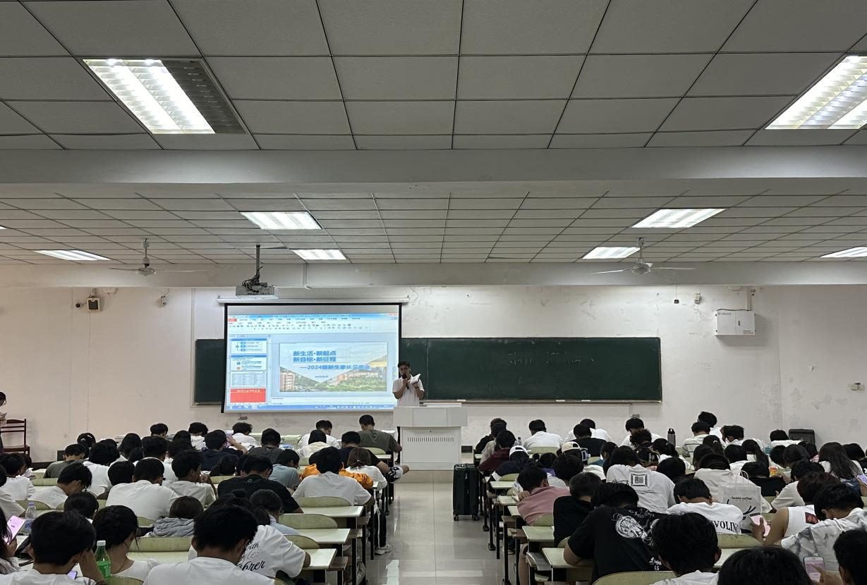 于佳山校区教三南103教室召开2024级新生《学生手册》专题学习会。2024级辅导员孙晨担任主讲,全体新生参加了此次活动。