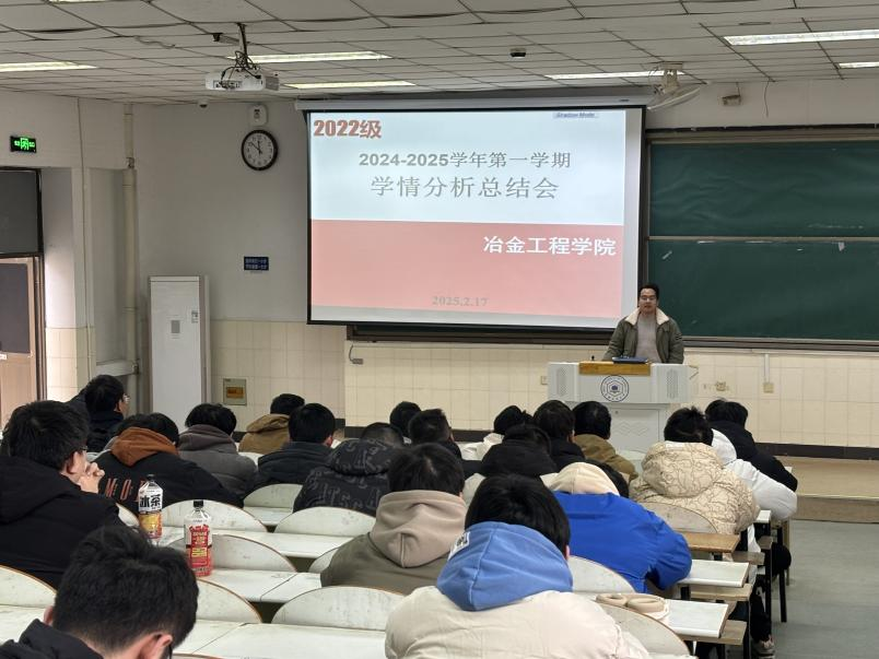 在阶教105召开2024-2025学年第一学期2022级学情分析暨安全教育大会,2022级辅导员李亚飞、刘茗竹及2022级学生参加了此次会议。
