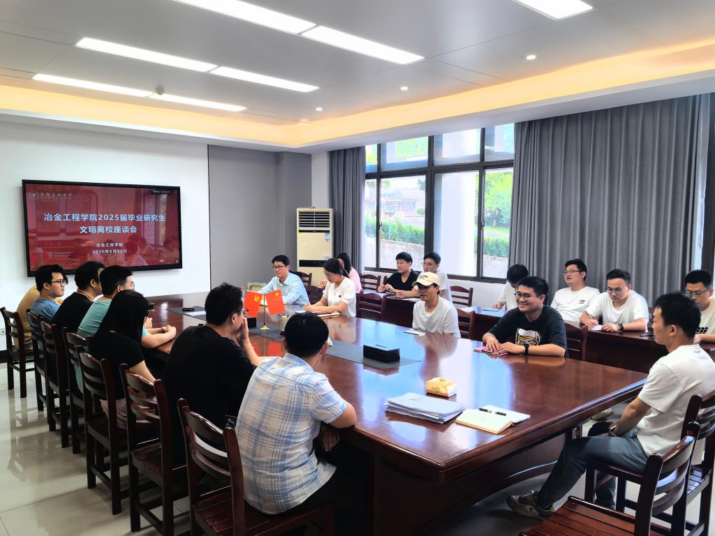 于秀山校区冶金楼南317会议室召开2025届毕业研究生文明离校座谈会。院党委副书记、纪委书记、副院长朱艳飞,副院长赵卓,以及各班级研究生毕业生代表参加了座谈会,座谈会由辅导员吴巍主持。