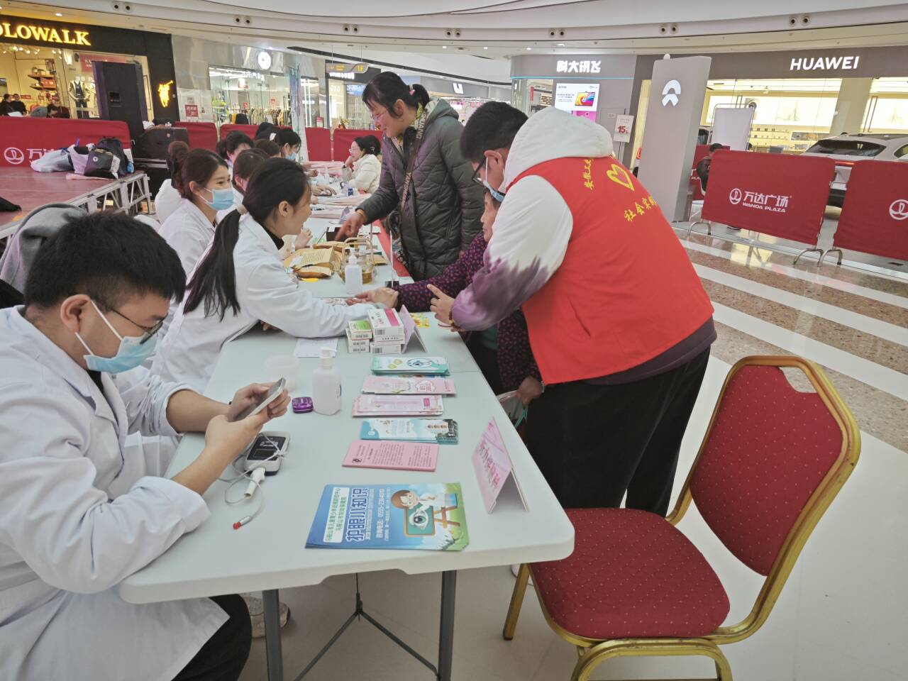 组织志愿者团队联合妇幼保健院先后赴马鞍山万达广场、金鹰购物中心的爱心义诊台开展“健康护航暖民心”义诊活动,用实际行动践行志愿服务精神。
