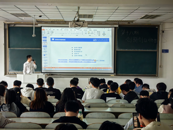 4月15日,四川麻将游戏 第18期创新创业训练营邀请安徽知问律师事务所专利代理师宋子瑜,于佳山校区教三南302教室进行专利文件的构成及交底书撰写培训,培训由训练营班主任吴巍主持。
