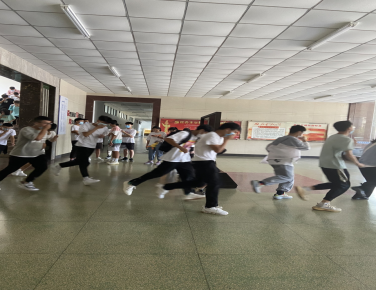 整场演练过程中,鸣响警报、人员疏散、清查现场、疏散集结、清点上报人数等环节紧张有序,“弯腰,低头,捂鼻”的口令不停重复,参加演练的同学们按照疏散方案,迅速由指定的疏散出口撤离至“安全地带”。