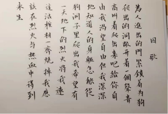 本次红色诗歌摘抄活动在全校师生中取得良好反响,活动的开展充分展现了青年学子良好的精神面貌,表达了新时代青年对革命先驱的崇高敬意。红色诗歌的摘抄激发了学生党史学习的积极性,让年轻的学生深感革命先烈殷切的期望和自己肩上所应承担的责任。