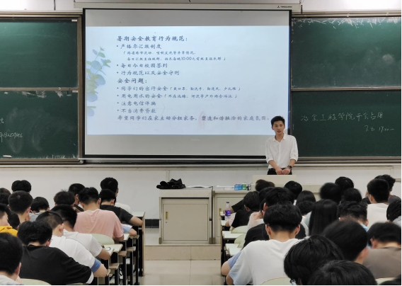 于2021年7月8日在教三南201举办安全教育大会。辅导员孙晨、王晶主持本次会议,2020级全体学生参会。