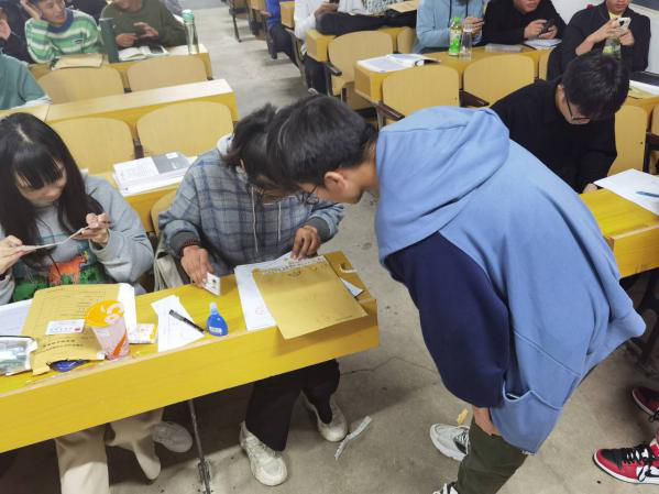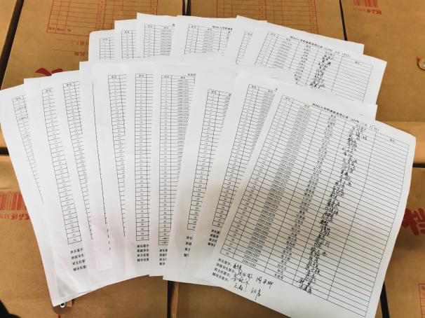 班级档案核查现场,由辅导员指挥,新生班主任、班级导生主导,班长、团支书辅助配合,按学号对学生进行分组,现场进行档案拆分并核查。同学们手持身份证和录取通知书,按学号顺序依次进行,核查确认无误后签署承诺书并签字,现场秩序井然。之后,所有班级将档案交至辅导员处进行最后的复审。
