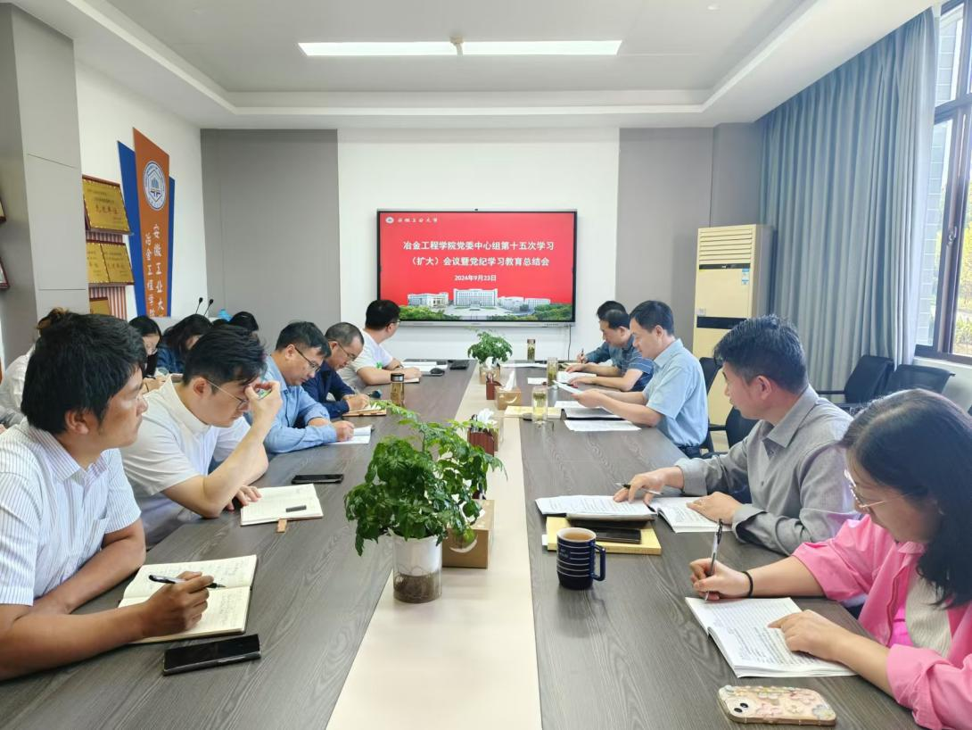 党委理论学习中心组于秀山校区冶金楼南324会议室召开专题学习(扩大)会暨党纪学习教育总结会。院党委中心组成员、纪委委员、党支部书记、系主任及全体辅导员参加了此次会议。会议由院党委书记路壮志主持。