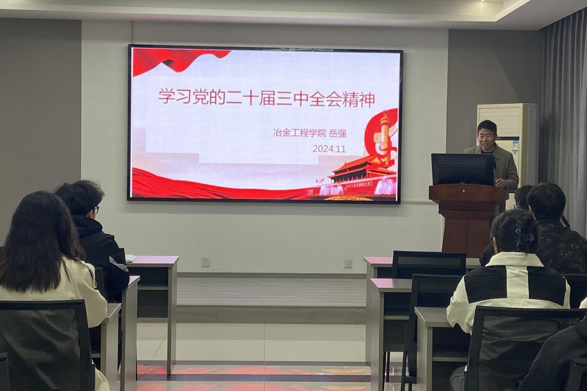 为深入学习贯彻党的二十届三中全会精神,11月29日晚,副院长岳强深入材料成型本科生第一党支部开展学习贯彻党的二十届三中全会精神宣讲。