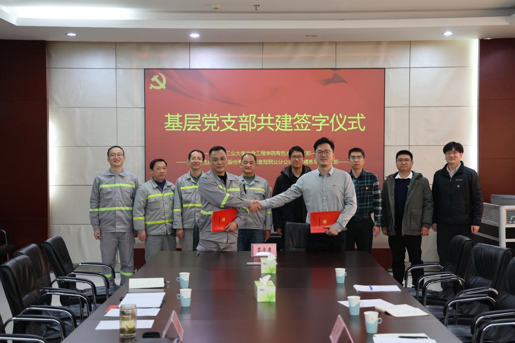 有色冶金党支部与铜陵有色金属集团金冠铜业分公司奥炉精炼车间党支部举行了“党建引领,‘铜’铸未来”支部联创共建签约仪式。院党委委员、副院长赵卓,金冠铜业分公司党委副书记、总工程师张志国,有色冶金党支部及奥炉精炼车间党支部党员代表共同出席了本次活动。