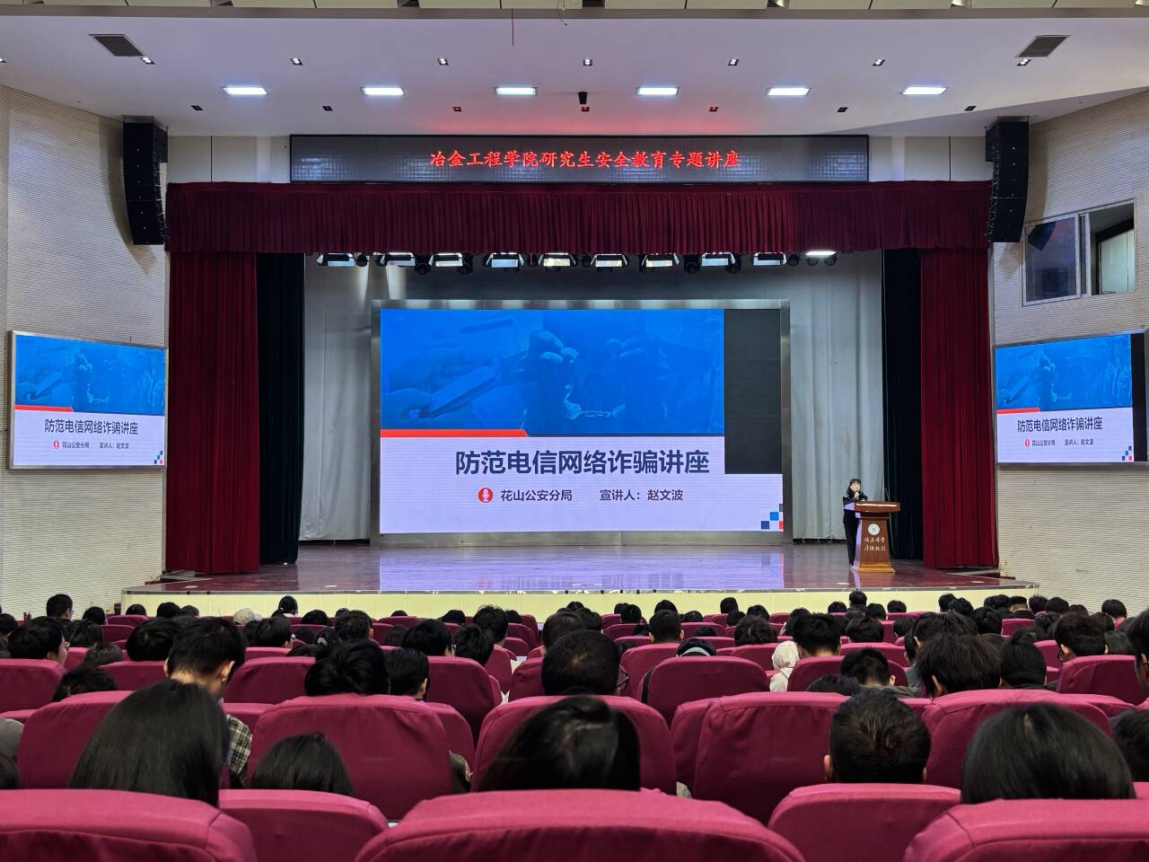 讲座伊始,马鞍山市花山公安分局赵文波警官应邀作防范电信网络诈骗专题报告。赵文波结合近期发生在高校周边的真实案例,深入剖析了网络刷单、冒充客服、虚假贷款等当前常见的诈骗手段,并详细讲解了针对性的防范措施。她提醒同学们时刻保持警惕,不轻信、不转账、不透露个人信息,切实增强防骗意识,守护好个人财产安全。