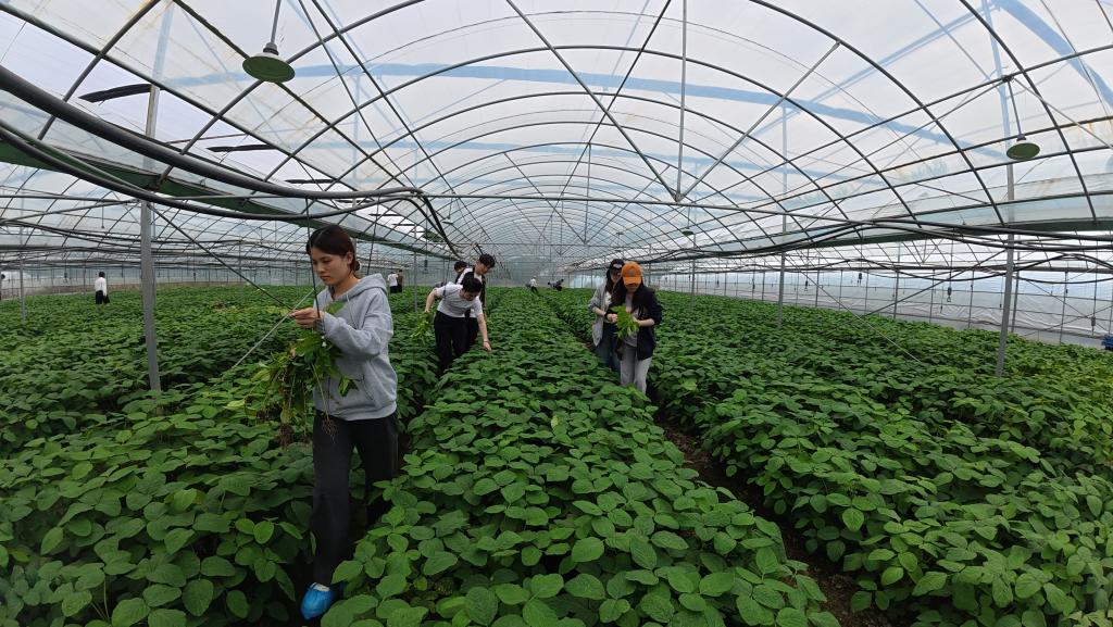 随后,师生一行走进红光村特色农产品示范种植基地,实地参观种植区域与培育设施,村书记邵定春详细介绍了基地的产业布局、特色品种及种植技术。