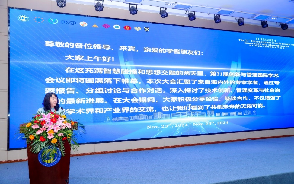 2024年11月24日上午9点,第21届创新与管理国际学术会议(ICIM2024)在武汉理工大学图书馆报告厅成功闭幕。本次会议为期两天,汇聚了来自世界各地的学术专家、研究学者以及相关领域的行业代表,围绕“绿色创新与可持续发展”主题展开深入探讨与交流。