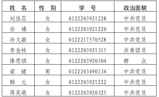 经本人申请、研究生支教团推免生遴选工作小组面试选拔等环节,决定推荐刘佳蕊等8名同学参加中国青年志愿者扶贫接力计划第28届研究生支教团校级选拔,现予以公示(按姓氏笔画排序)。